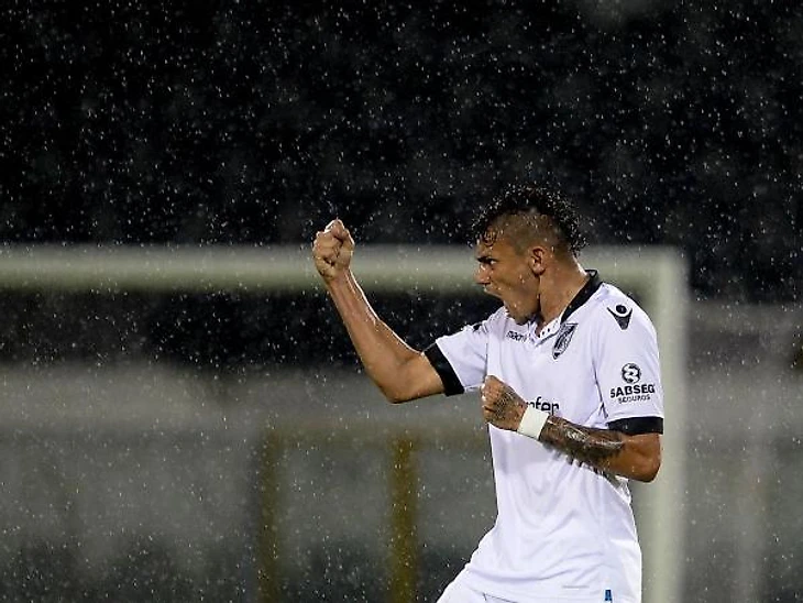 «Витория Гимараэш», в случае собственной победы, а также осечек конкурентов, по итогам тура могла подняться на вторую строчку в турнирной таблице. И перед началом встречи против «Насьонала» казалось, что свою часть этой задачки подопечные Педру Мартинша сумеют решить без особых проблем. По крайней мере, прекрасная форма Мареги и трёхматчевая безвыигрышная серия «островитян» указывали именно на это. Однако, со стартовым свистком судьи оказалось, что игроки «Насьонала» не собираются вскидывать лапки вверх и намеренны дать серьёзный бой, именно гости с Мадейры и создали первый опасный момент в этой игре. Правда со временем «конкистадоры» всё же перехватили инициативу и несколько раз были близки голу. И тут на голову хозяев свалилась беда, причём, как всегда, откуда не ждали. Марега сначала зачем-то сфолил на защитнике «Насьонала» Секейре, а затем вместо извинений взял и сунул тому в лицо. Разумеется, малиец мгновенно увидел перед собой красную карточку и отправился на отдых намного раньше положенного. Спустя всего минуту после того, как «островитяне» получили численное преимущество, «Насьонал» сумел забить, но судья на линии зафиксировал несуществующий офсайд у забившего гол Корреи.Стоит отметить, что судейская бригада отработала эту игру достаточно слабо и после игры местная пресса вполне заслуженно пропесочила служителей фемиды. И если до конца тайма хозяева сумели продержаться, то сразу после перерыва они всё же были вынуждены капитулировать, когда Хамзуаи расстрелял ворота Дугласа после сольного прохода Бонильи. К счастью для фанатов «Гимараэша» в составе их любимой команды в этот момент на поле оказался игрок, сумевший перевернуть с ног на голову ход неудачно складывающейся игры. Этим игроком оказался бразильский форвард Соареш, который сначала сравнял счёт после ошибки Фигейреду, а затем незадолго до финального свистка реализовал одиннадцатиметровый удар, назначенный за снос Бруну Гашпара. Таким образом «конкистадоры» одержали тяжелейшую победу и продолжили свою погоню за грандами.