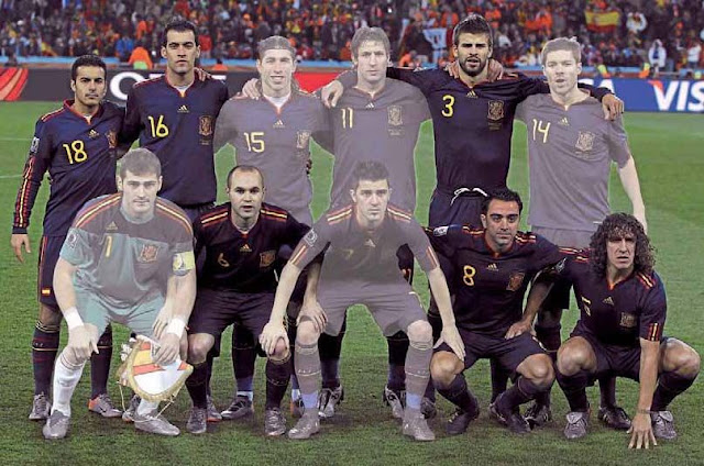 Ведущие игроки сборной Испании являются воспитанником «Ла Масии». В составе сборной команды во время полуфиналов и финалов было семь игроков «Барсы»: Жерар Пике, Карлес Пуйоль, Серхио Бускетс, Хави, Андрес Иньеста, Педро, Давид Вилья что сосавляет 63% от всей команды. До матча в Дурбане, до Германии, в составе команды было шесть игроков «Барселоны», но в последних играх, благодаря своему стремительному прогрессу, Педро вытеснил из состава Фернандо Торреса, Давида Сильву и Хесуса Наваса. Более того, расстановка игроков Висентом Дель Боске уже является ответом на многие вопросы: двое защитников, двое полузащитников один из которых капитан и трое нападающих. Только вратарь (Икер Касильяс), двое защитников (Серхио Рамос и каталонец Хоан Капдевила), а так же полузащитник (Хаби Алонсо) не входят в состав «Барсы», и только Давид Вилья, среди «сине-гранатовых» не тренировался в «Ла Масии».