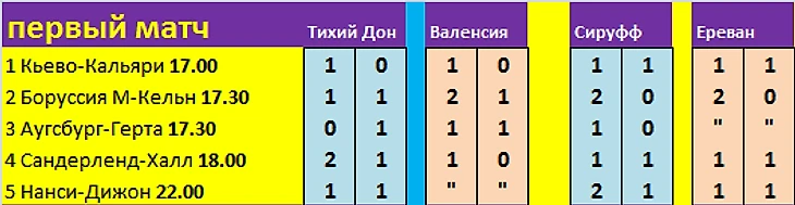 Боруссия Д-Бавария 3-1 Фидель и 0-2 Стахановец, Кайрат, 2-3 Сируфф, Эдельвейс