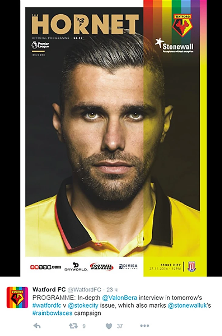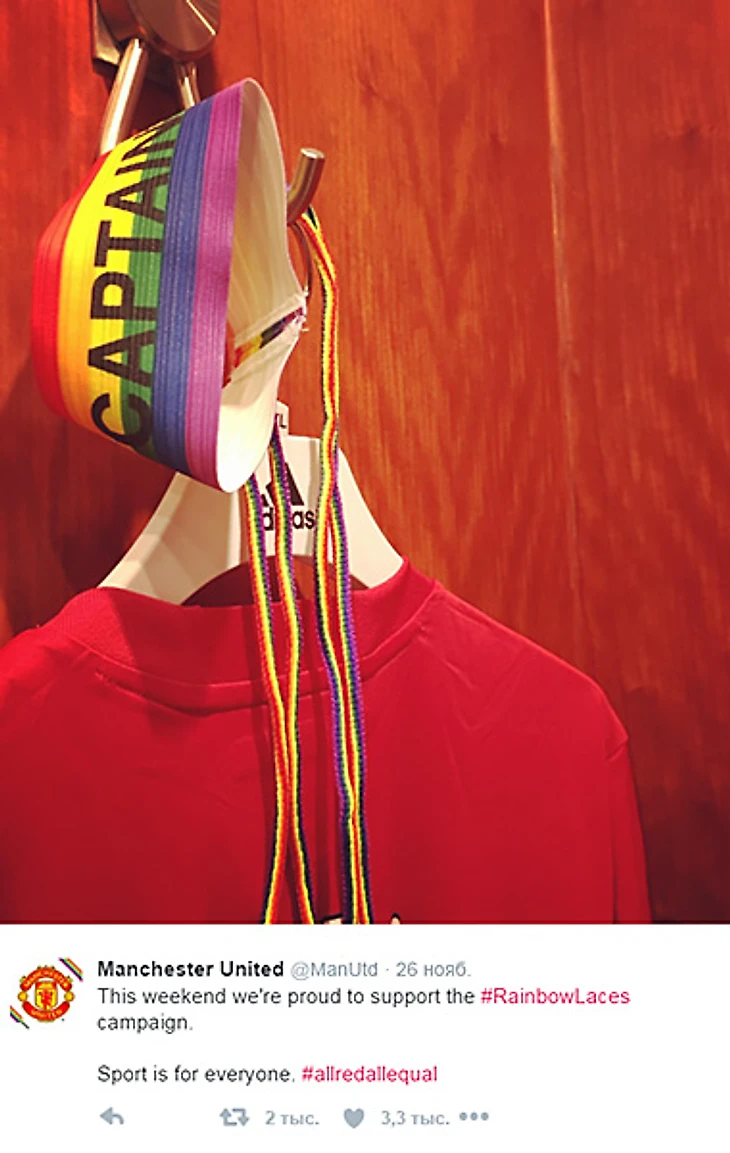 В эти выходные английская премьер-лига присоединилась к акции «Радужные шнурки» – масштабной кампании по искоренению неравенства в британском спорте и обществе и в поддержку LGBT. В рамках этой акции обувь игроков и судей украсили шнурки радужных цветов, капитанские повязки тоже стали необычными.