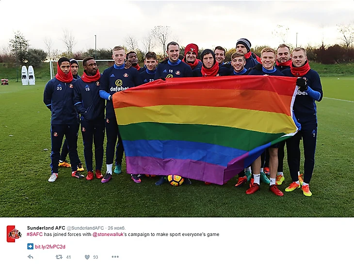Игроки «Сандерленда» с радужным флагом. Такие же выносили на каждом из стадионов перед матчами.