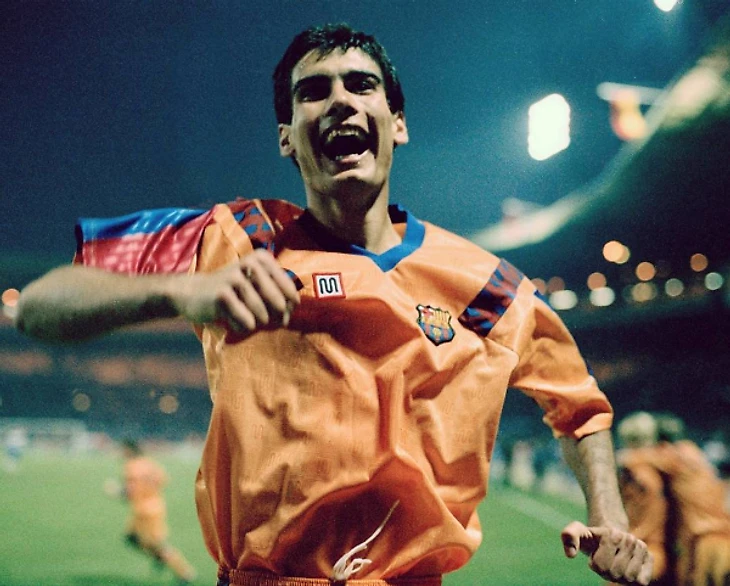 Гвардиола в раритетной рыжей футболке «Барселоны».