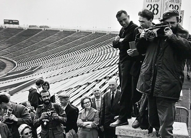 А вот Фидель что-то фоткает на стадионе имени Кирова в Ленинграде.