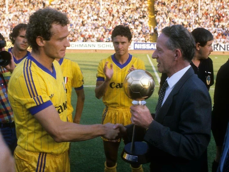 1985 год. Удивительное чемпионство «Вероны» и награда лучшему игроку года защитнику команды Хансу-Петеру Бригелю. Забил 9 мячей за сезон.