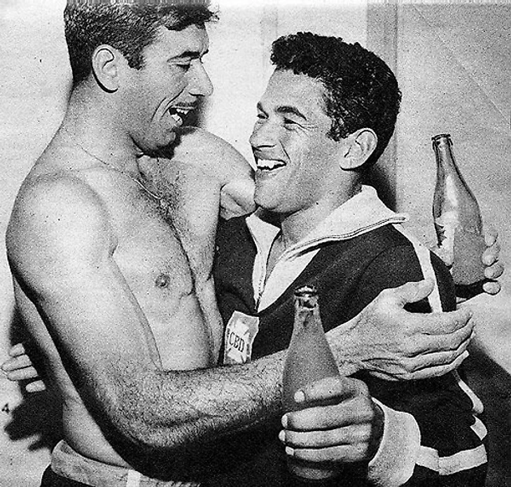 Нилтон Сантос и Гарринча решили пропустить по бутылке боржоми.