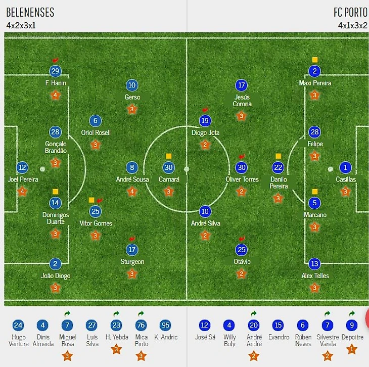 Во встрече на «Рештелу» у гостей провалила игру вся атакующая линия, которая за 90 минут игры сумела создать всего лишь несколько опасных моментов, но и те запорола. О том насколько плох был «Порту» в этой игре говорит тот факт, что в середине второй половины игры на поле, вместо инертных Отавио и Жоты, появились Депуатр и Варела, которые на данный момент являются, пожалуй, главными претендентами на то чтобы сменить клубную прописку в ближайшее время, а лучшим в атаке в этот вечер был защитник Фелипе. Но и они не смогли ничего поделать с обороной «Белененсеша», которая может записать себе эту встречу в актив. В самой концовке игры хозяева и вовсе могли выиграть, но Касильяс, который был одним из лучших в составе «Порту» в этой игре, спас свою команду от катастрофы.