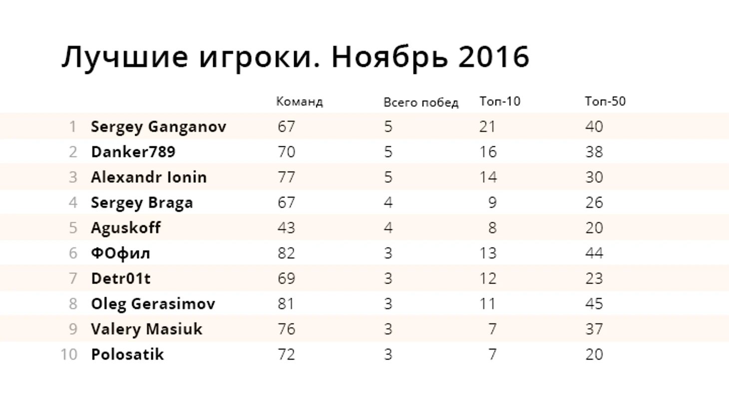 Но все по порядку. Перед вами – топ-10 игроков за ноябрь: