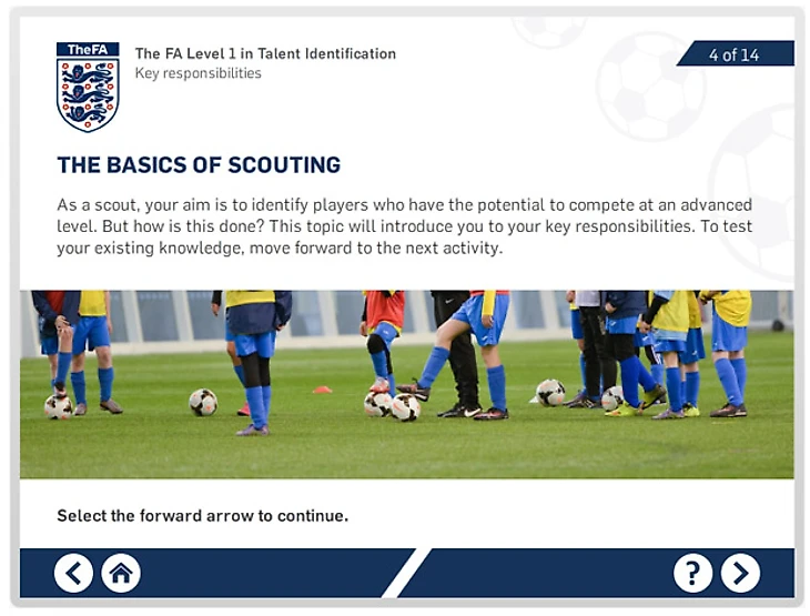 Курсы первого уровня будут доступны онлайн и предназначены для тех, кто работает в детском футболе и включает в себя базовую информацию о поиске талантов, такую как разницу между выступлением игрока и его потенциалом и т.д.