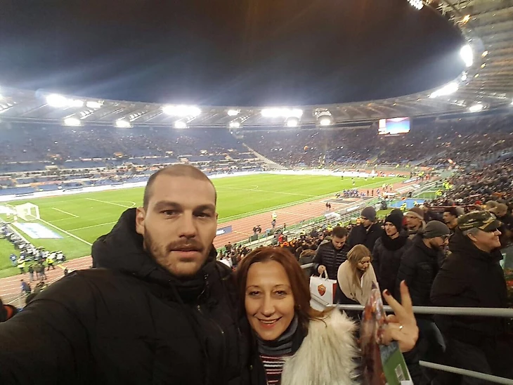 Болгарский защитник Росен Колев вместе с мамой в Риме на матче "Рома" - "Милан".