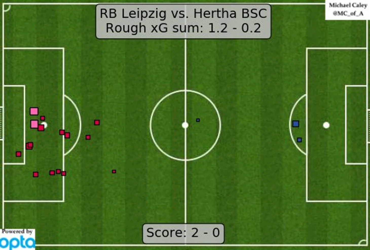 Противопоставить хоть что-то доминирующему на поле в течение всего матча Лейпцигу «Герте» не удалось категорически. Берлинцы не создали ни единого по-настоящему опасного момента, откровенно не успевая за «быками». Незадолго до перерыва столичная команда давления не выдержала – на 41-й минуте с передачи Кейта Тимо Вернер открыл счет в матче. После перерыва рисунок игры изменился несильно, несмотря на замены, сделанные тренерами обеих команд. «Красные быки» продолжили атаковать, едва ли давая берлинцам отдышаться. Редкие контратаки гостей заканчивались бесславно, не создавая никакой реальной опасности. На 62-й минуте Орбан забил второй гол быков в матче после углового, поданного Форсбергом.