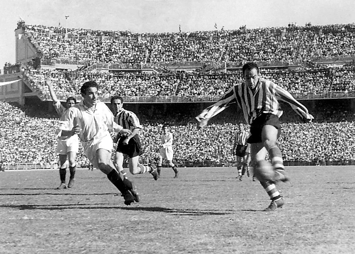 Текст песни, вручённой каждому из 80 000 болельщиков, пришедшим на Чамартин 29 апреля 1954 года на прощальный матч благородного и неистового форварда, забивавшего столько, что его рекорд — 231 мяч в Примере лишь через 60 лет перекрыл Лео Месси.