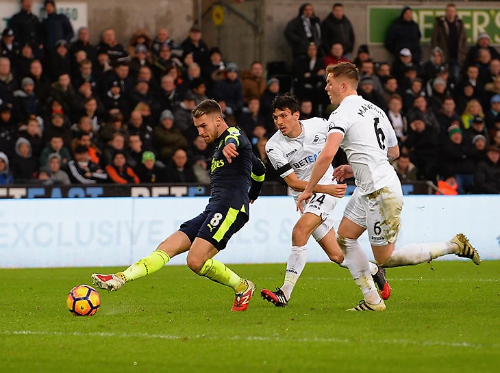 Новые тренеры «Суонси» начинают с отладки прессинга. Именно это объединяет назначение Франческо Гвидолина и Пола Клемента – оба сделали ставку на давление. В случае с Полом схема прессинга направлена на игрока с мячом: его (как правило, Джаку) окружали сразу 2-3 футболиста «лебедей». В первом тайме это затруднило для «Арсенала» доставку мяча вперед (после матча эффективность прессинга хозяев отметил даже Арсен Венгер), к чему, в частности, приложили руку дисциплинированные вингеры – Уэйн Раутледж и Натан Дайер. Их главное отличие от конкурентов в том, что они хорошо чувствуют моменты, когда могут надавить на чужого игрока, перекрыв линию паса на своего.