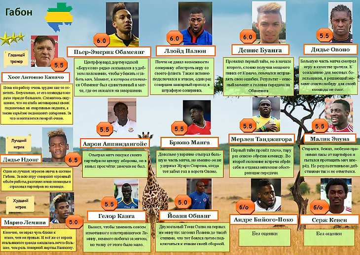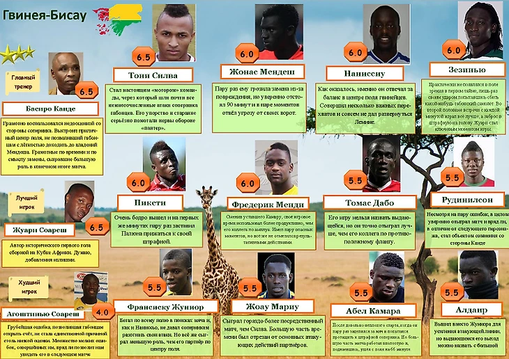 Шарль Каборе – 6.5 Двужильный капитан сборной помимо того, что начинал атаки команды, должен был играть и за себя, и за двух Траоре (а именно, за Бертрана и Абду Разака, иногда совершавших глупые потери).