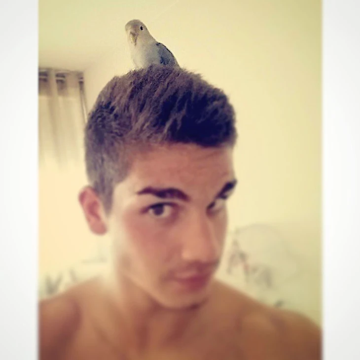 А тут Андре посадил себе на голову волнистого попугайчика: