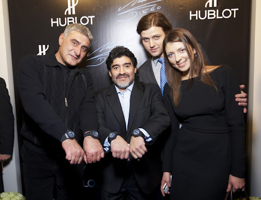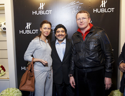 На фото: Виктор Гусев, генеральный менеджер Hublot Рикардо Гваделупе и Марадона