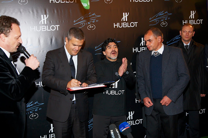 После спортивной части началась официальная. Сначала Диего осмотрел выставку часов Hublot...