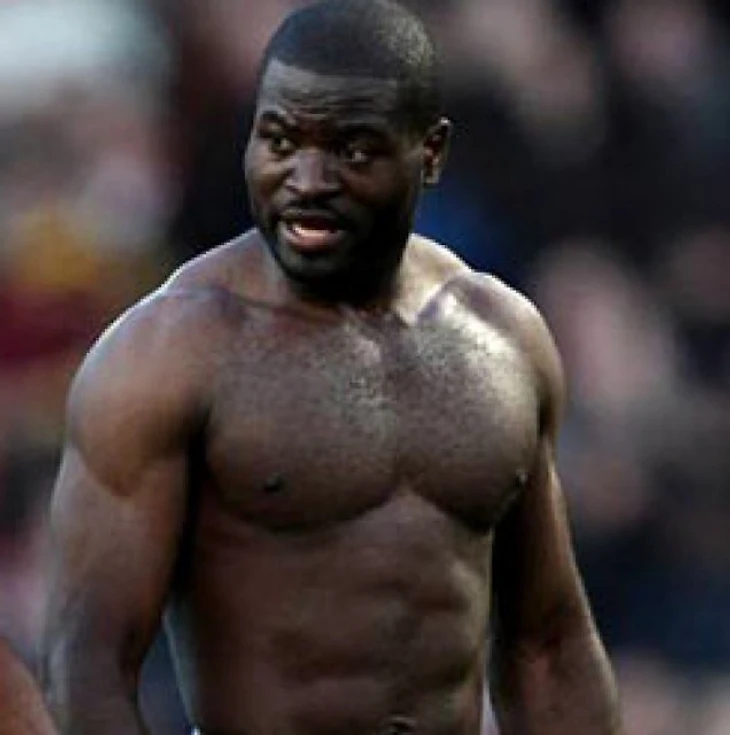 Его зовут Джордж Элокоби, ему 30 лет и он игрет за Колчестер Юнайтед. В FIFA 17 у него рейтинг "Strength" аж 95. Больше только у Акинфенвы.