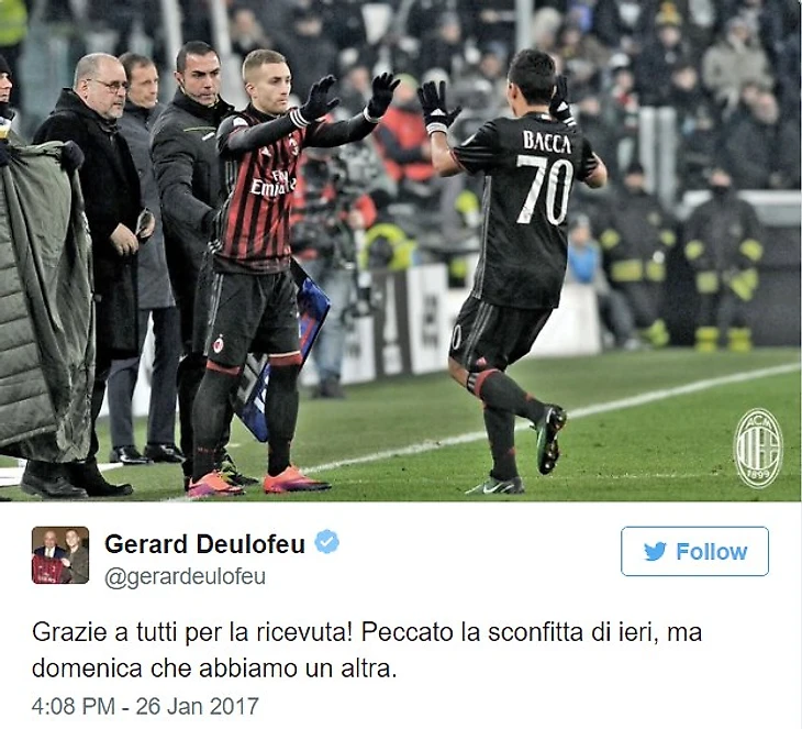 Жерар Деулофеу перешел в «Милан» 23 января и спустя 2 дня вышел на замену в кубковой игре против «Ювентуса». По окончании матча, завершившегося поражением (1:2), 22-летний форвард попытался блеснуть знаниями итальянского языка, но сел в лужу:
