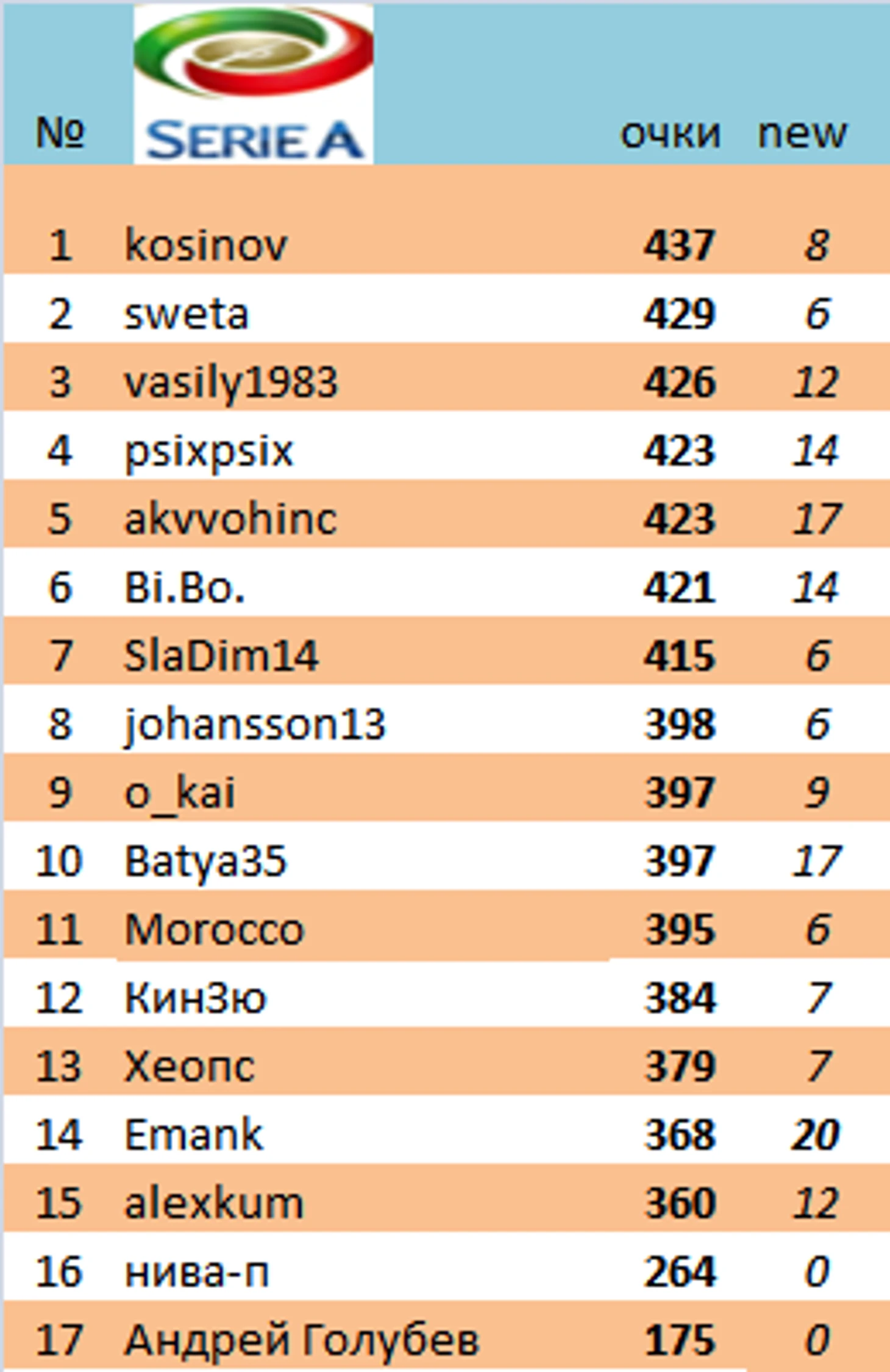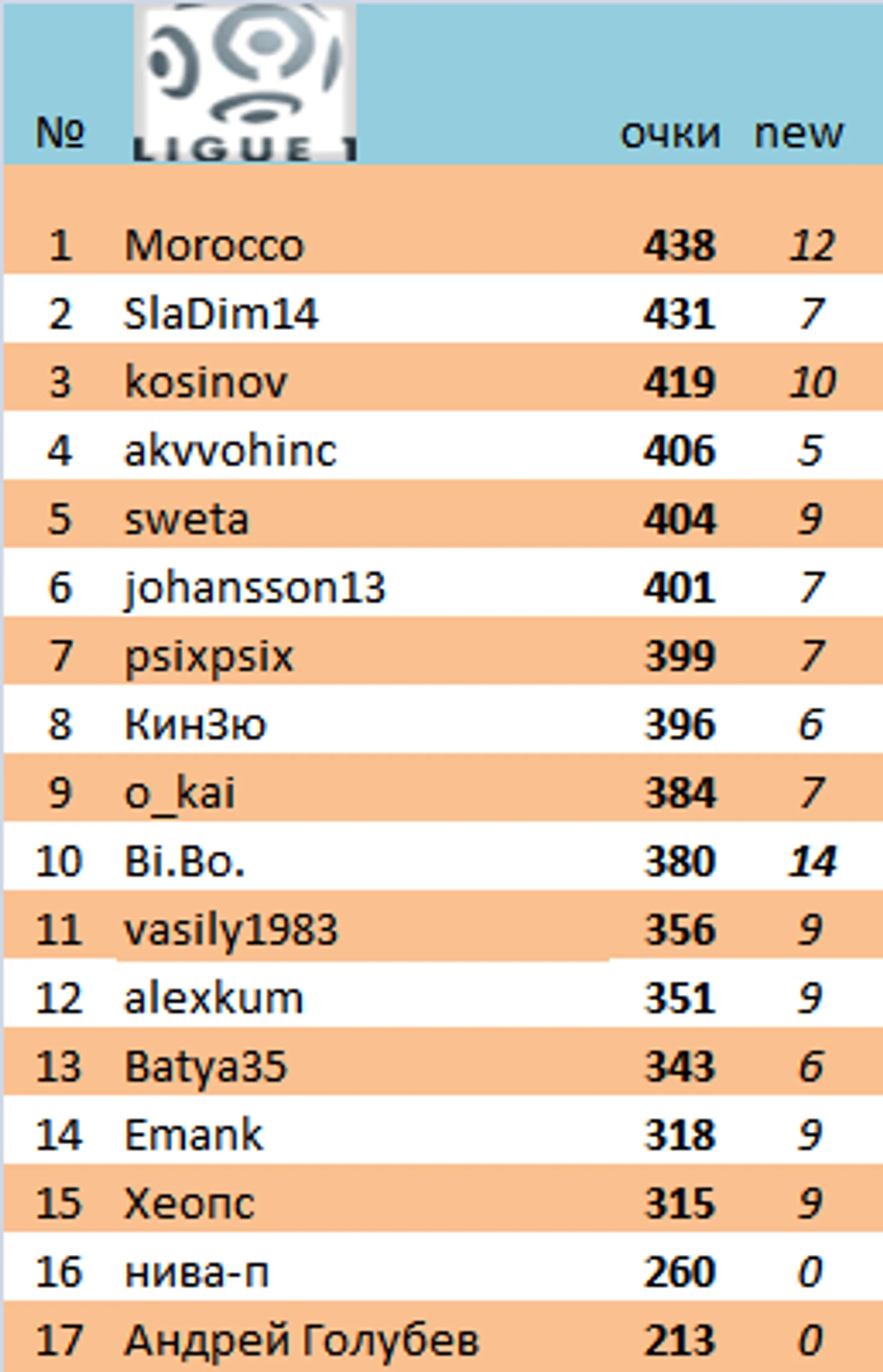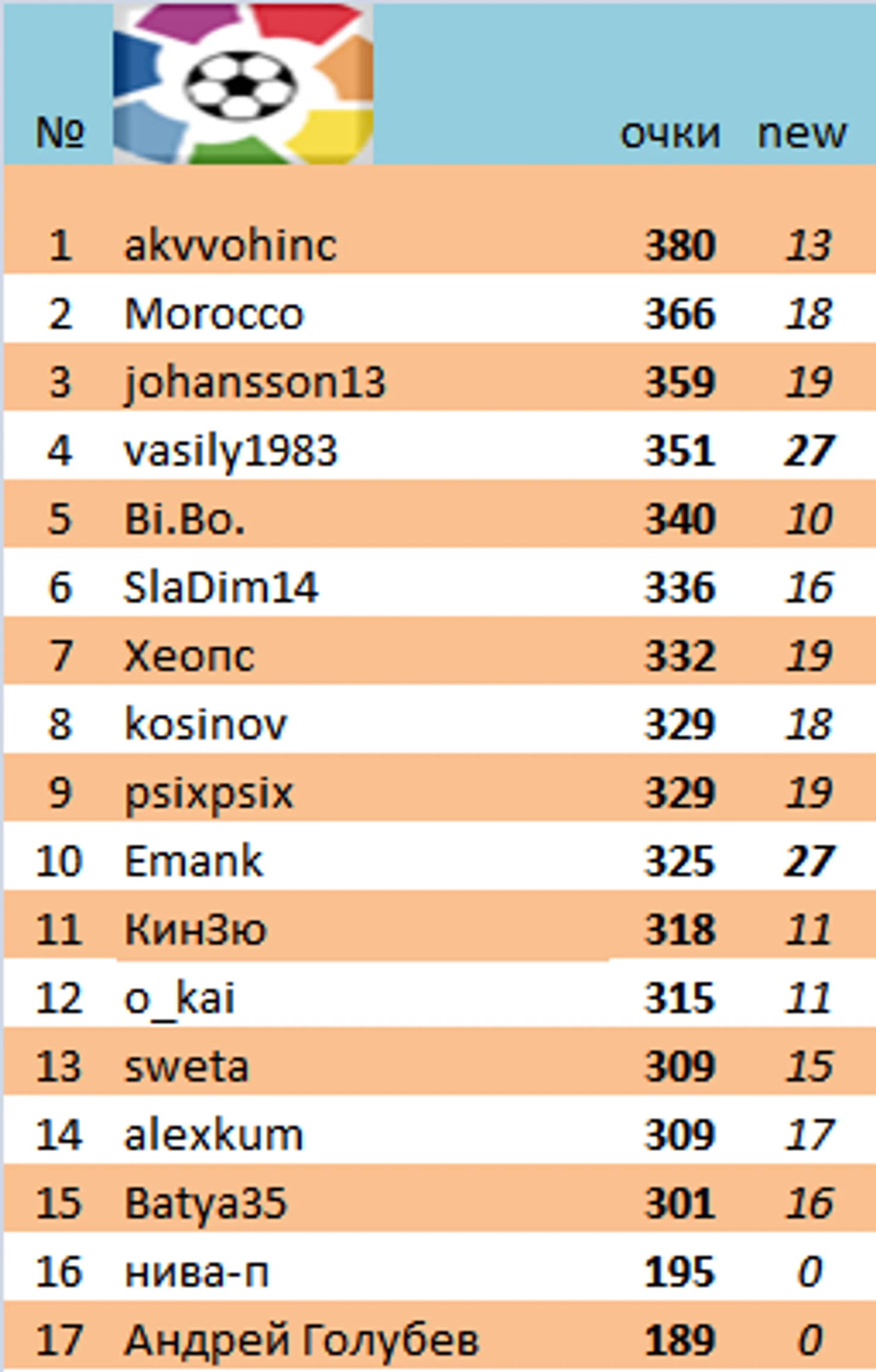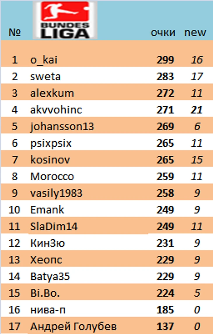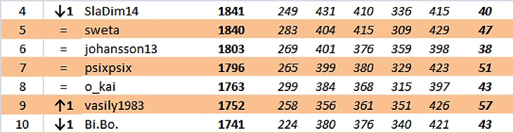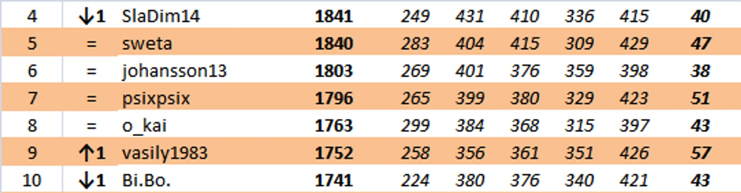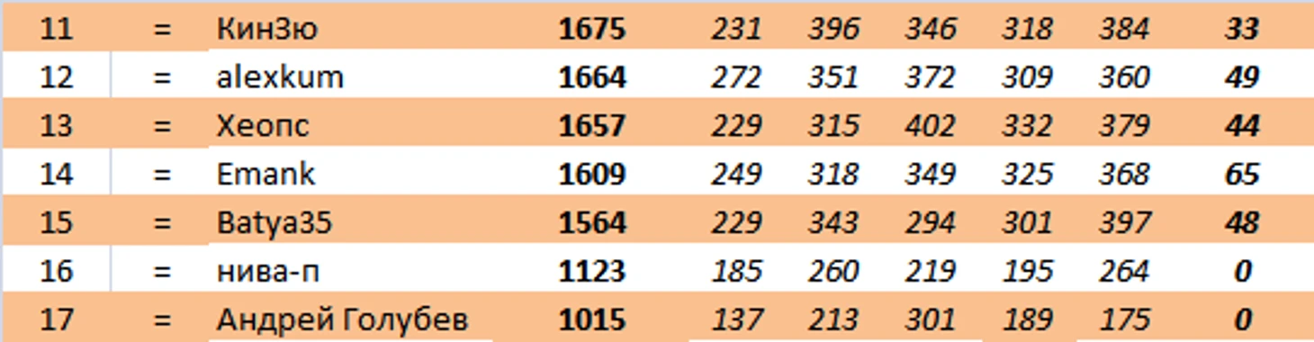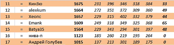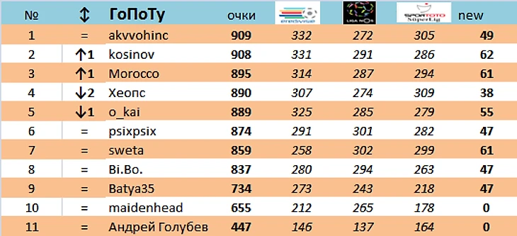 akvvohinc продолжает лидировать. Было +8, стало +1