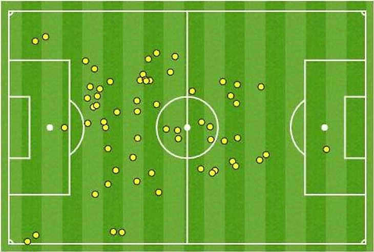 Аргентинец завершил этот матч с 63 касаниями мяча, отдав 38 передач (5 из которых неточные) - показатели настоящего todocampista.