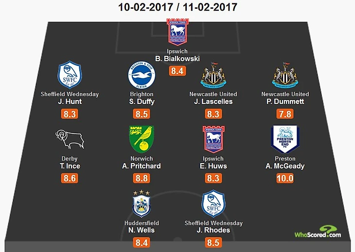 ● Наки Уэллс и символическая сборная 31-го тура Чемпионшипа от WhoScored.