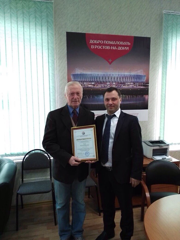 Начальник Управления по физической культуре и спорту города Ростова-на-Дону Денис Браславский в честь 80-ти летнего юбилея вручил Вениамину Искре благодарность Управления по физической культуре и спорта г.Ростова-на-Дону. В свои почтенные годы Вениамин Яковлевич Искра бодр и активен так же, как когда-то на футбольном поле, за что его, быстроногого правого крайнего, любили болельщики «Ростсельмаша», за который он выступал семь сезонов (в его активе свыше 150 матчей, 30 забитых мячей). Сегодня же Искра руководит «Клубом ветеранов футбола Дона» и благодаря его бурной деятельности игроки, в разное время повесившие бутсы на гвоздь, чувствуют внимание к себе и заботу. Вся спортивная общественность города ещё раз поздравляет Вениамина Яковлевича с юбилеем и благодарит за огромный вклад в развитие спорта в южной столице.