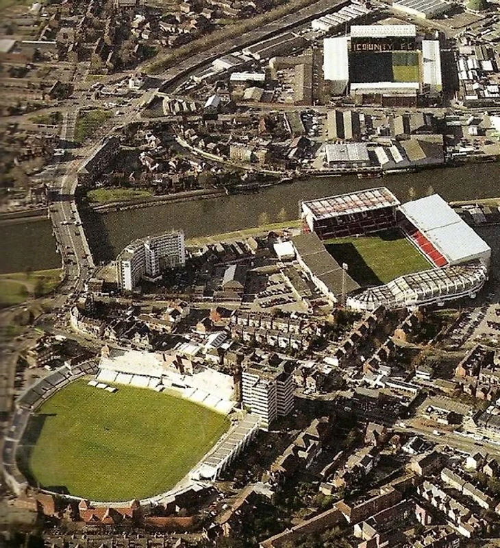 На фото ниже на переднем плане «Трент Бридж Крикет Граунд», где оба клуба проводили домашние матчи (хотя не только там) до открытия своих стадионов, открыт аж в 1841 году.