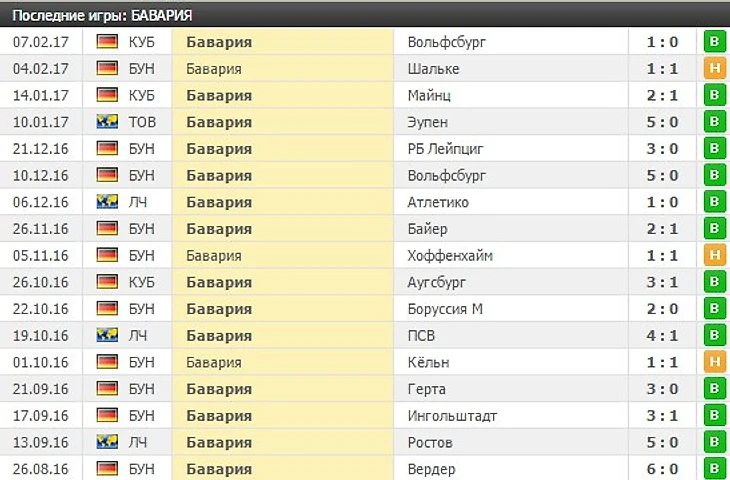 Во внутреннем первенстве Бавария дома имеет 7 побед и 3 ничьи (Хоффенхайм, Кёльн, Шальке) при разнице мячей 27:5. Если брать все соревнования в этом сезоне (ЛЧ, Бундес, кубок Германии), то 14 побед и 3 ничьи при разнице 49:8. Забивали абсолютно во всех матчах, больше 1 не пропускали ни разу.