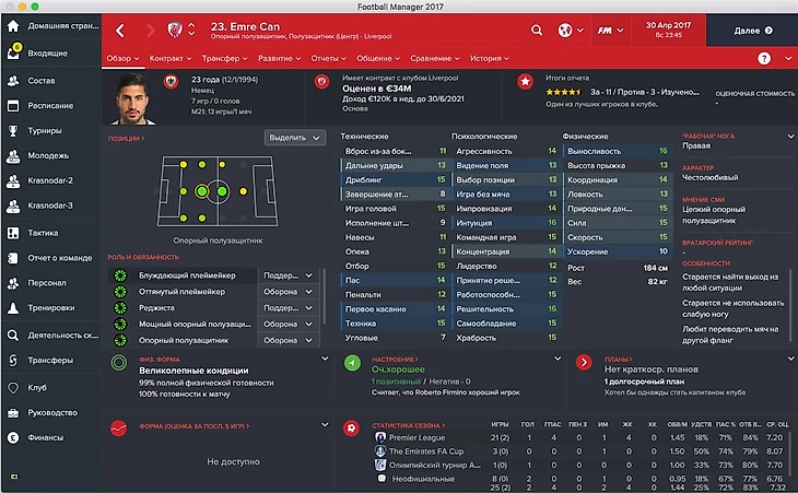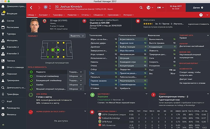 Другой немецкий полузащитник с большим будущим. В игре его родной ролью указана «оттянутый плеймекер», но с его трудолюбием и физикой реджиста подойдет не меньше.