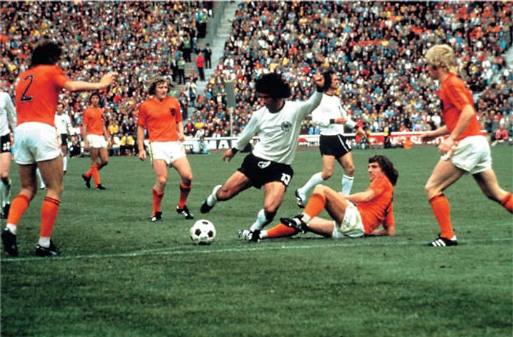 Честно сказать (ососбенно с учетом того, что ВПС ярый болельщик бундесманншафт) в этом матче голландцам просто не повезло. Влюбив весь мир в свой тотальный футбол, став любимцами болельщиков со всего мира, ведомые великим Круиффом, обыгравшие Бразилию и Аргентину, голландцы сами упустили победу в том матче. На 2-й минуте Неескенс открыл счет с пенальти, после того, как Ули Хенесс срубил Круиффа, но спустя 23 минуты Янссен в своей штрафной срубает Хельценбайна и Брайтнер с пенальти восстановил статус-кво. Ну а затем Герд Мюллер забил победный мяч на 43-й минуте. Вот так сборная ФРГ стала Чемпионом мира, а у голландцев прибавилось поводов для ненависти к немцам.