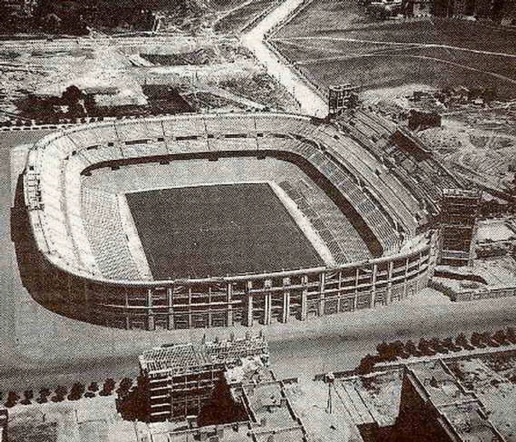 Но для начала - немного истории. Действующий стадион "Реала" принял первый матч 14 декабря 1947 года. Назывался он тогда "Нуэво Чамартин" ("Новый Чамартин") - перенимая эстафету от прежней клубной арены "Чамартин", вместимости которой (28 тысяч зрителей) стало не хватать.