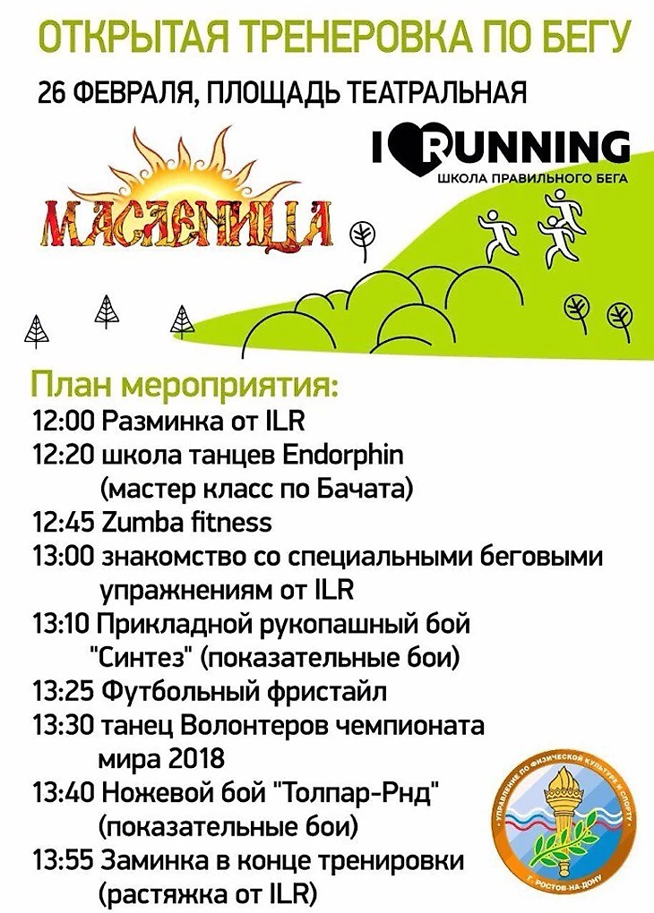 Друзья! Приглашаем вас на открытую тренировку школы правильного бега I LOVE RUNNING Ростов-на-Дону!Приходите всей семьей 26 февраля на Театральную площадь!