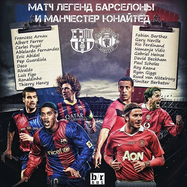 Запланированы два благотоворительных поединка между бывшими игроками Барселоны и Манчестер Юнайтед. Первая игра пройдет 30 июня на Камп Ноу, а вторая 2 сентября на Олд Траффорд.