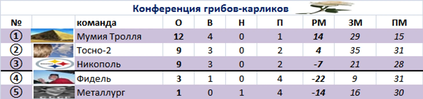 Фидель получил 4 тех.пора, а Металлург набрал 1 очко из 15 возможных...