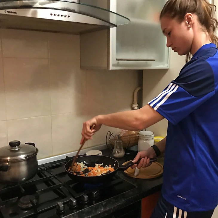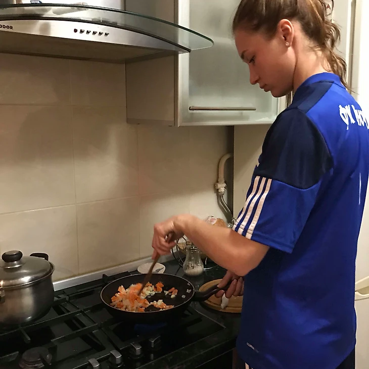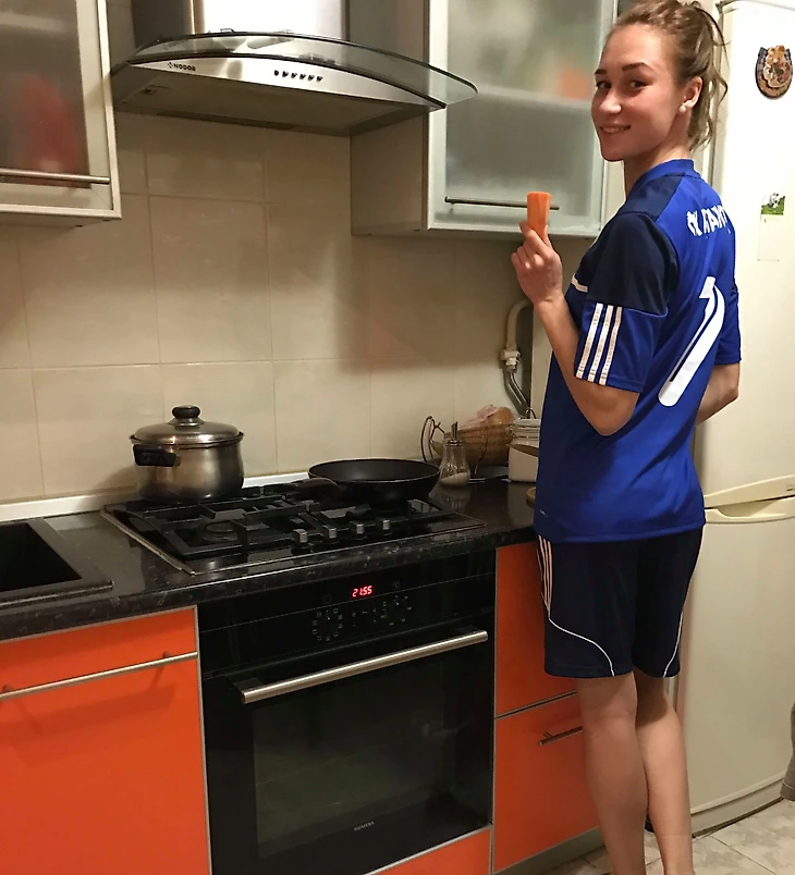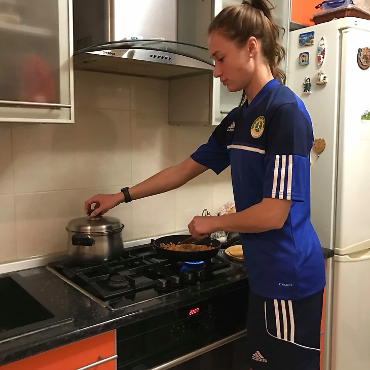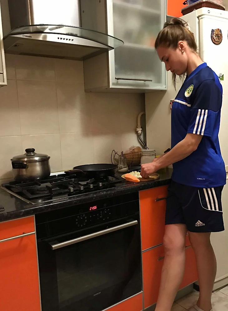 Ксения Веселуха является футболисткой ФК "Кубаночка" из Краснодара и сборной России, она с этим мнением не согласна, как и многие другие девушки в футболе. Ксюша очень воспитанная и порядочная девочка, хозяюшка. Футболистка решила приготовить борщ на 8 марта, чтобы показать мальчикам, что девушки всегда остаются девушками, во всем.