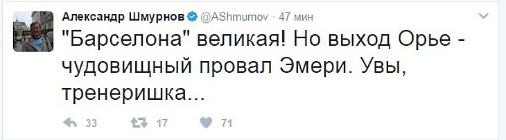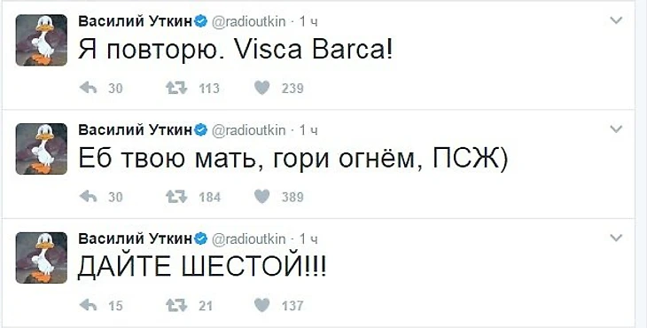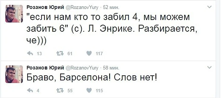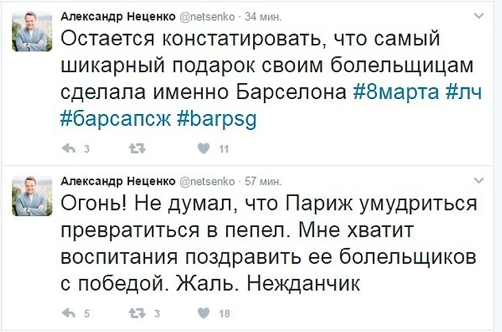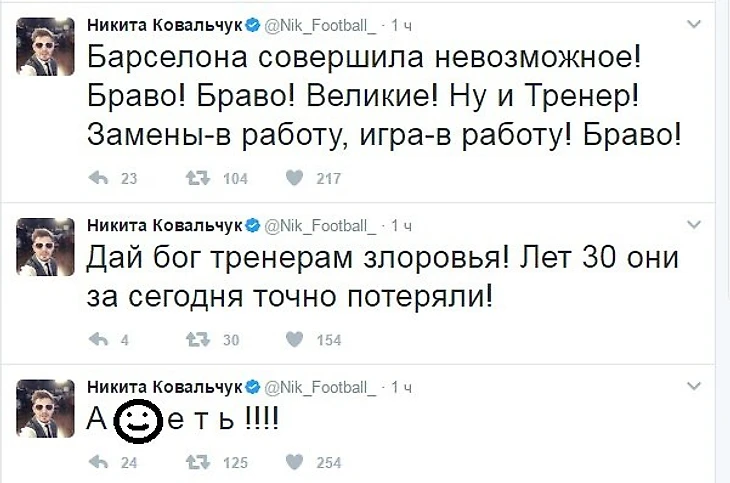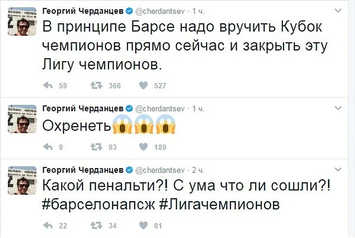 Совсем недавно завершился исторический матч "Барселона" - "ПСЖ", реакция на который, в социальных сетях, последовала незамедлительно по всему миру. Давайте посмотрим. что именно сказали отечественные футбольные эксперты на своих страничках в Twittere: