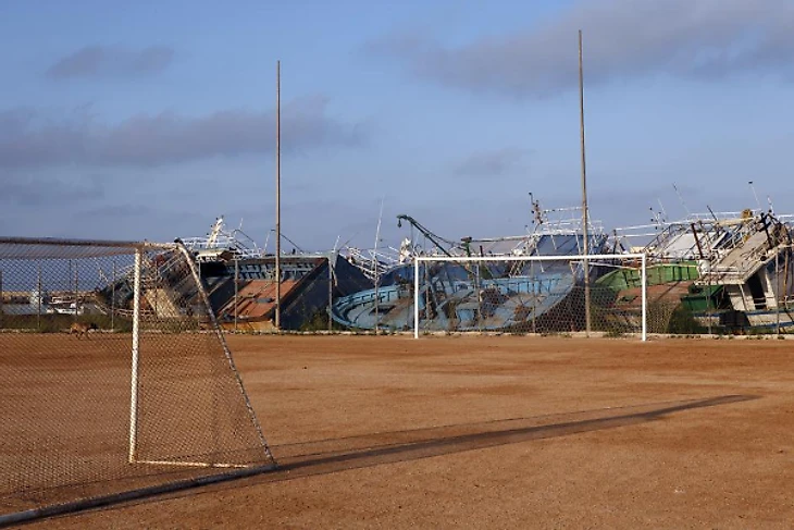 Лампедуза, Сицилия. Поле, огороженное ржавыми лодками.