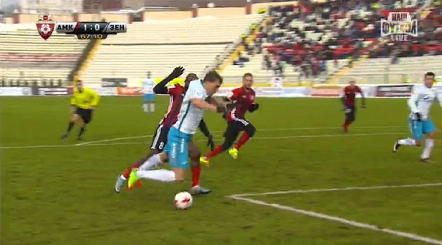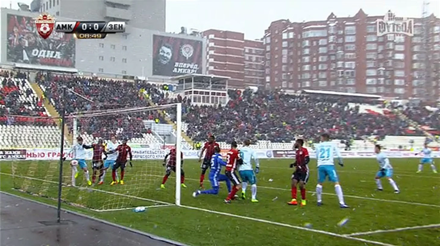 В матче с «Амкаром» «Зенит» пострадал от неправильного решения московского судьи Евгения Турбина. На 7-й минуте после подачи Олега Шатова мяч оказался в воротах, откуда его, пытаясь забить, выбил защитник «Зенита» Луиш Нету. На повторе видно: гол был.