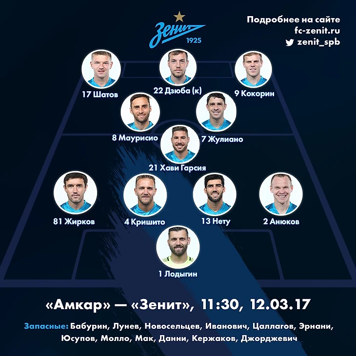 В составе «Зенита» произошло лишь одно изменение, по сравнению с предыдущим матчем: вместо Мигеля Данни с первых минут вышел Олег Шатов. И это несмотря на разногласия между тренером и футболистом, о которых известно уже абсолютно всем. Данная перестановка является вынужденной для Мирчи Луческу, потому как после недавней травмы у португальца повышается риск получить повторное повреждение. Именно из-за искусственного поля мы не увидели в старте и Бранислава Ивановича, который привык играть на идеальных английских газонах.
