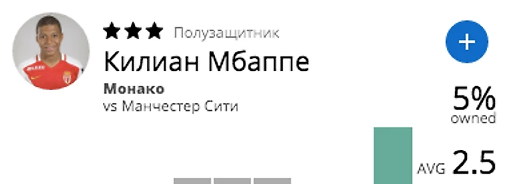 18 лет, 7 голов в 6 последних играх Лиги 1, первый гол в ворота «Сити» – будущее французского футбола может стать главным сюрпризом и для вашей команды. И хотя стоимость в три звезды ставит его в один ряд с не менее «звездным» Фалькао, Мбаппе в последних играх выглядит увереннее и свежее своего коллеги – надеемся, что все получится и в сегодняшнем матче.