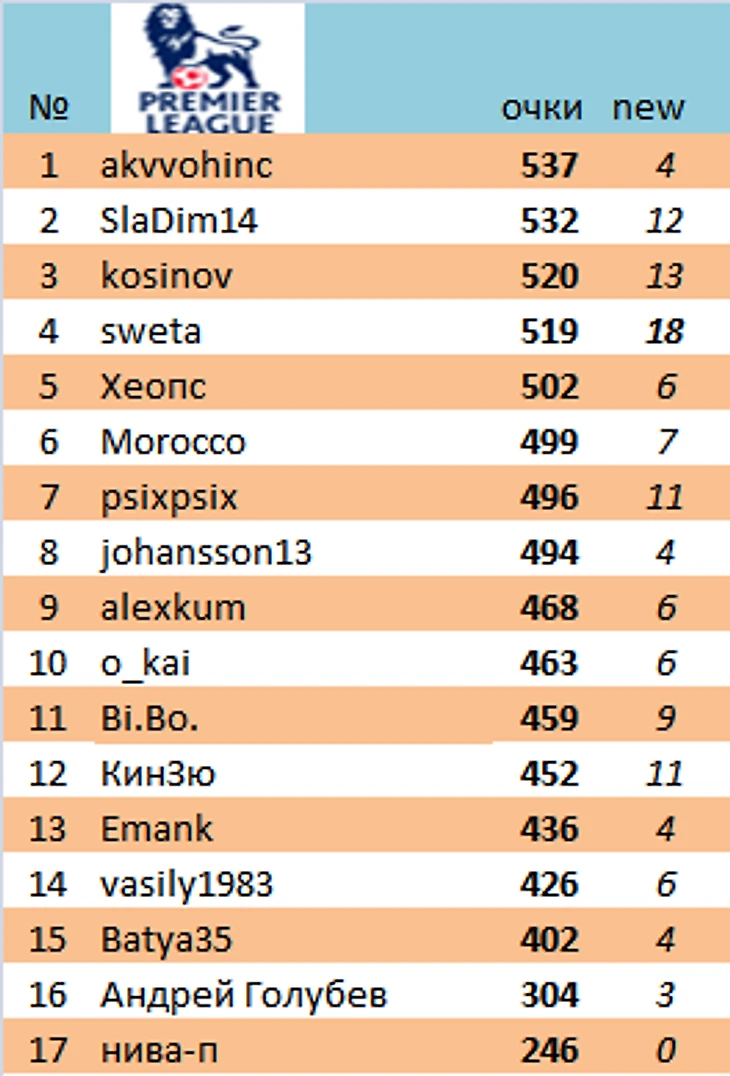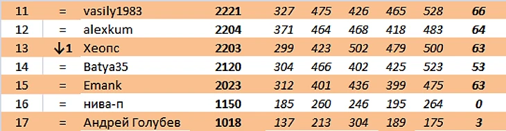 В АПЛ героиней маленького тура стала sweta (18 очков)