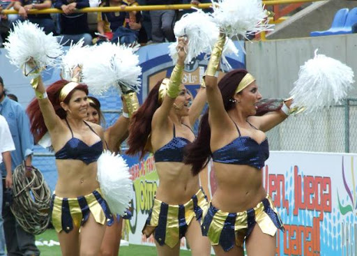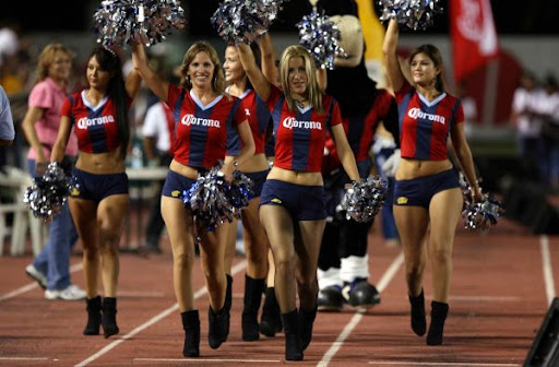 Объединяясь в группы, эти разноплановые девушки надевают хоть и пошленькие, но все же привлекающие внимание костюмы и развлекают трибуны в перерывах футбольных матчей.