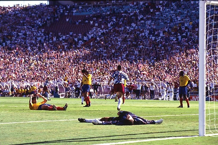 ЧМ-1994. Только что колумбийский защитник Андрес Эскобар (крайний слева) отправил мяч в свои ворота, чем очень огорчил наркобаронов.