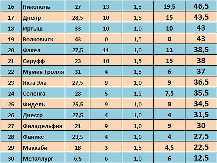 Ялтабург не хватило чуть-чуть для попадания в тройку, а вот Селенга и Маккаби откровенно провалились...