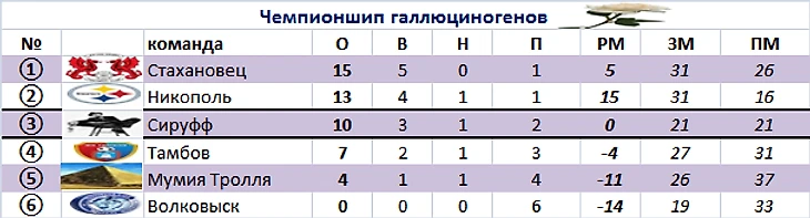 Тамбов решил сняться с турнира, Мумия Тролля в очередной раз вылетела в Конфу, а Волковыск зачем-то ради шутки проиграл 6 раз подряд.