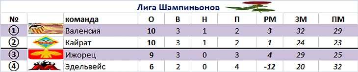 Эдельвейс занял последнюю строчку, отстав от лидеров всего лишь на 4 пункта.