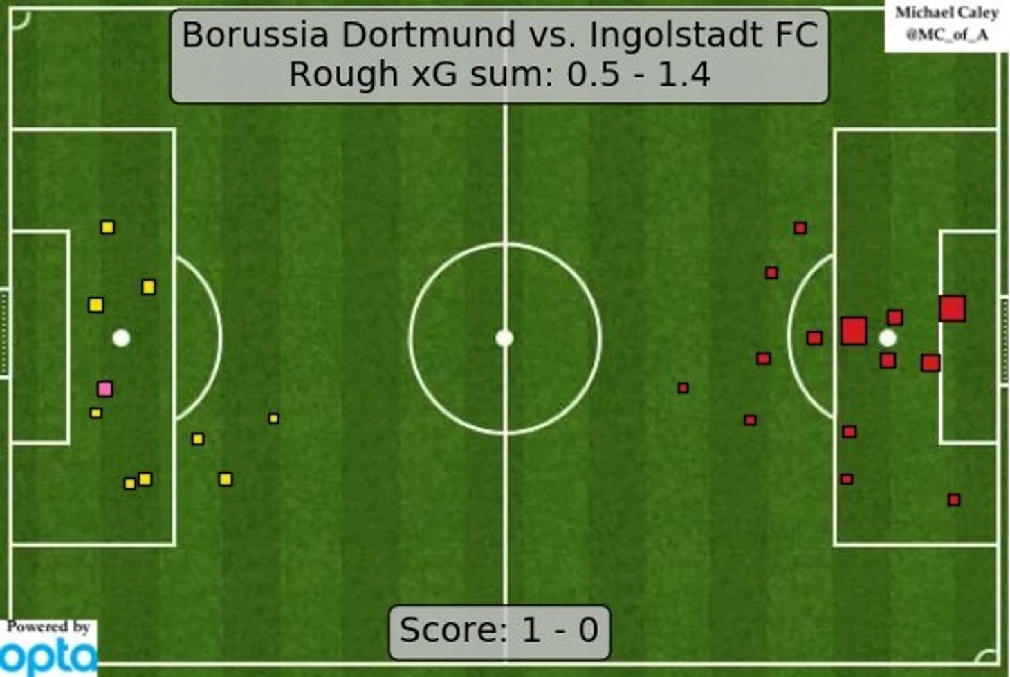 «Ингольштадт» не отсиживался в обороне и перед паузой имел на счету 9 ударов в створ, так много в одном тайме еще не били ни одни гости «Дортмунда» в этом сезоне. А после паузы количество ударов выросло до 14;