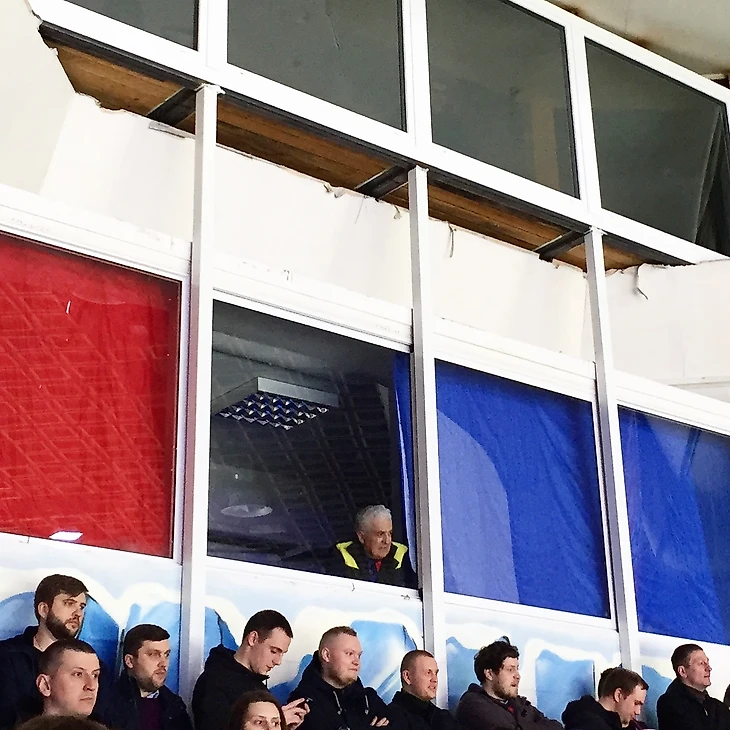 Внутри тоже есть свои символы. Над фанатским углом на площадку через окно смотрит один и тот же дедушка, и все знают: если придут в ЛДС, обязательно его увидят. В сложные минуты на льду любят включать песню из «Белорусского вокзала», и особенно — ее концовку; а во время остановок — ставить хиты о советском хоккее.