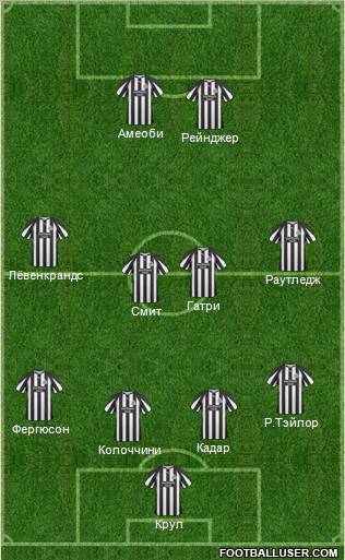 "Ньюкасл": Крул - Р.Тэйлор, Колоччини, Кадар, Фергюсон - Раутледж, Гатри, Смит, Лёвенкрандс - Рейнджер, Амеоби.