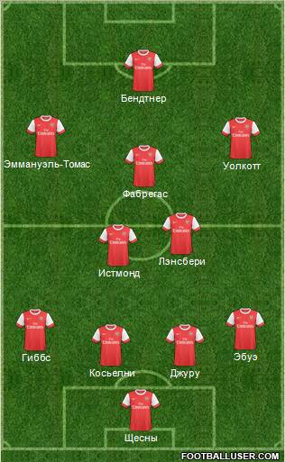 "Арсенал": Щесны - Эбуэ, Джуру, Косьелни, Гиббс - Истмонд, Лэнсбери, Фабрегас - Уолкотт, Бендтнер, Эммануэль-Томас.